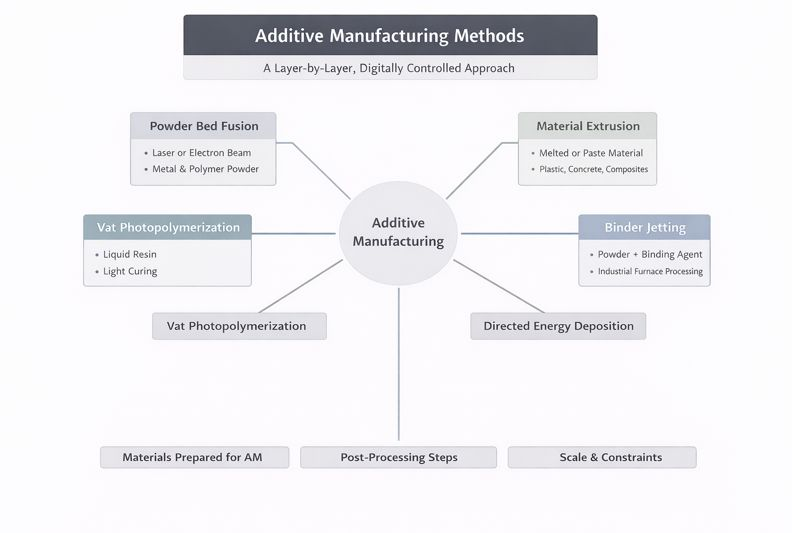 This layer-by-layer approach enables shapes, structures, and production pathways that are difficult or impossible with traditional methods. It also introduces distinct constraints related to materials, process control, post-processing, and qualification. Understanding additive manufacturing therefore begins with understanding how layers are created and bonded, rather than focusing on individual machines or brands.